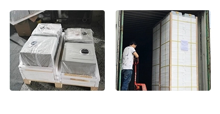2) Stack Pallet Packing: The Sinks will be packed with Plastic Bags and Foam, and then the goods will be packed on the Pallet, by this way, the goods can be protected well and the Total Volume is smaller, it can save Transportation Fees.